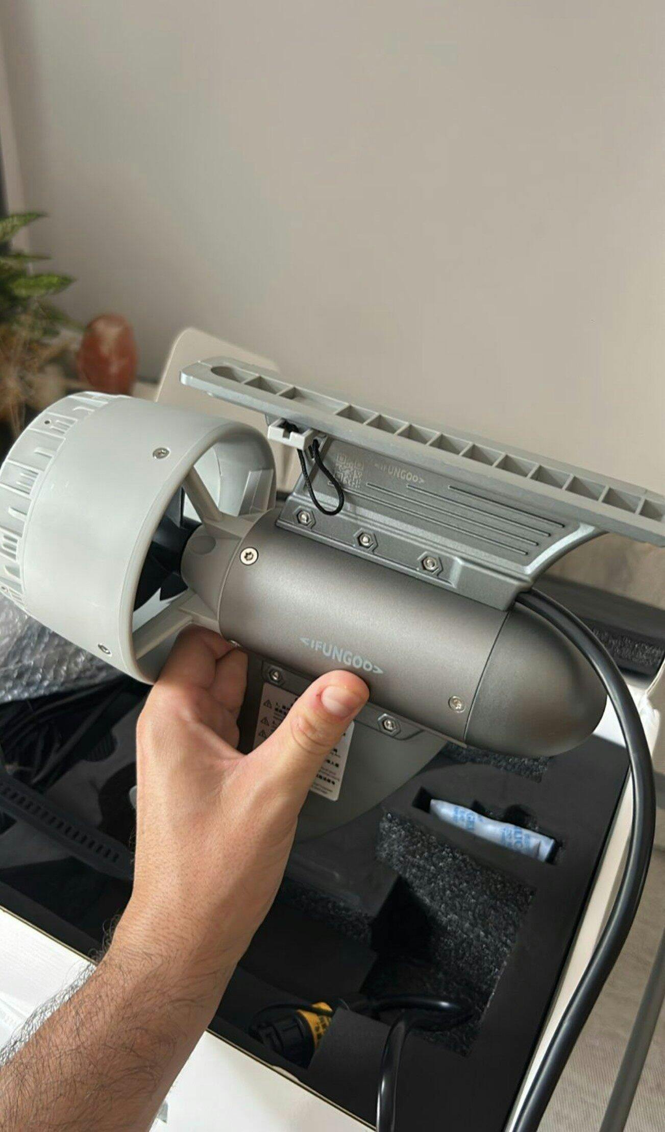 - Underwater Propeller:Starting method: button switch;Voltage: 12V;Power: 216W/288W;Battery life (max power): 1 hour;Battery: 22Ah;Propeller diameter: 15cm;Gear position: forward-reverse;Speed: 4-5km/h