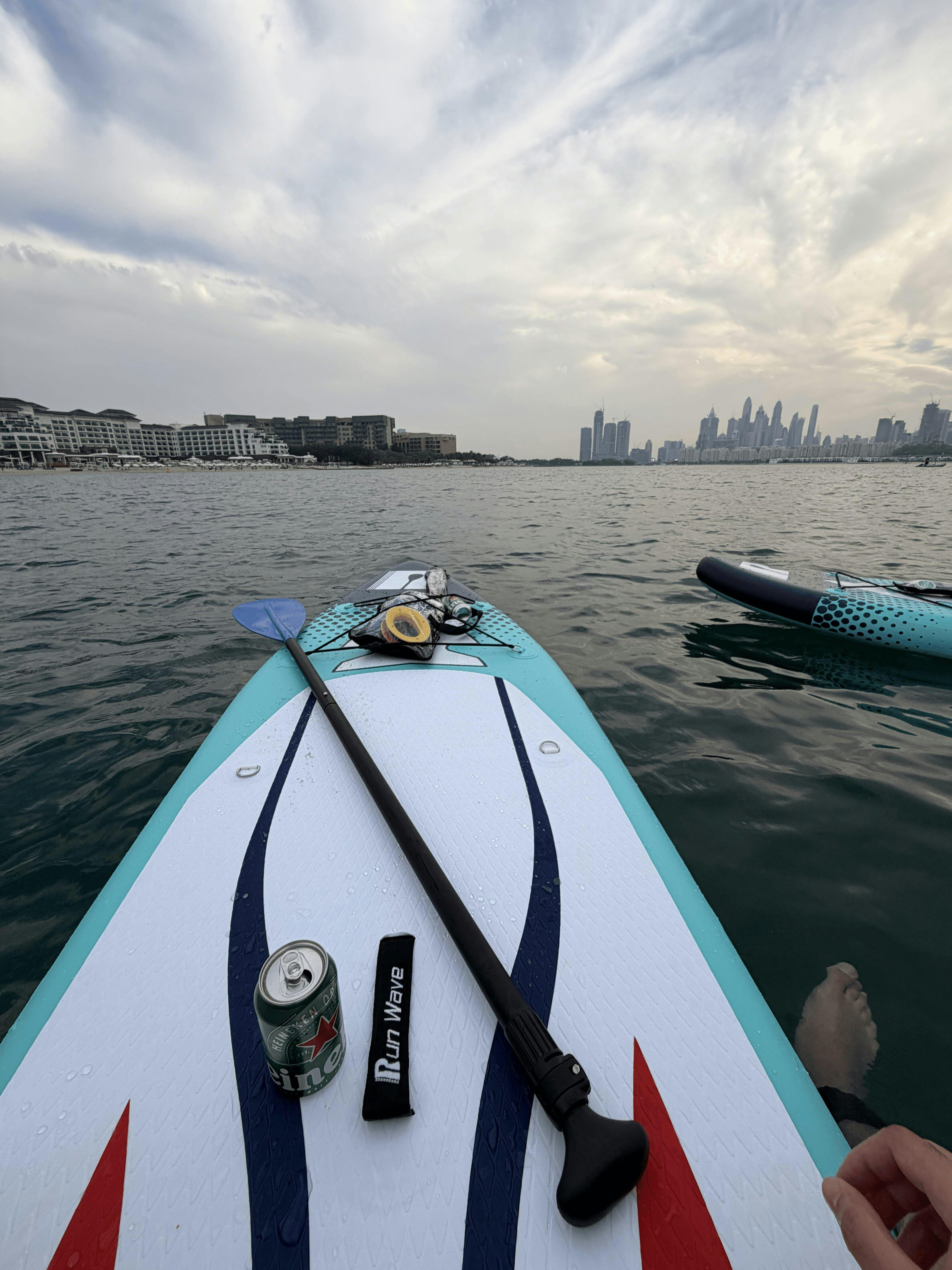 This thing is real fun. I got both the SUP and Electric motorised fin now I've never even heard about this or seen it until this popped up on my social page after a couple of days thinking about it I thought why not I'll take the risk and sense that it arrived just under a week ago and now five days I've been using it battery last forever honestly I got a whole day okay the battery wasn't on constant I bought a fishing rod with me and that was me really happy I got this loads of fun especially this time of the year.
